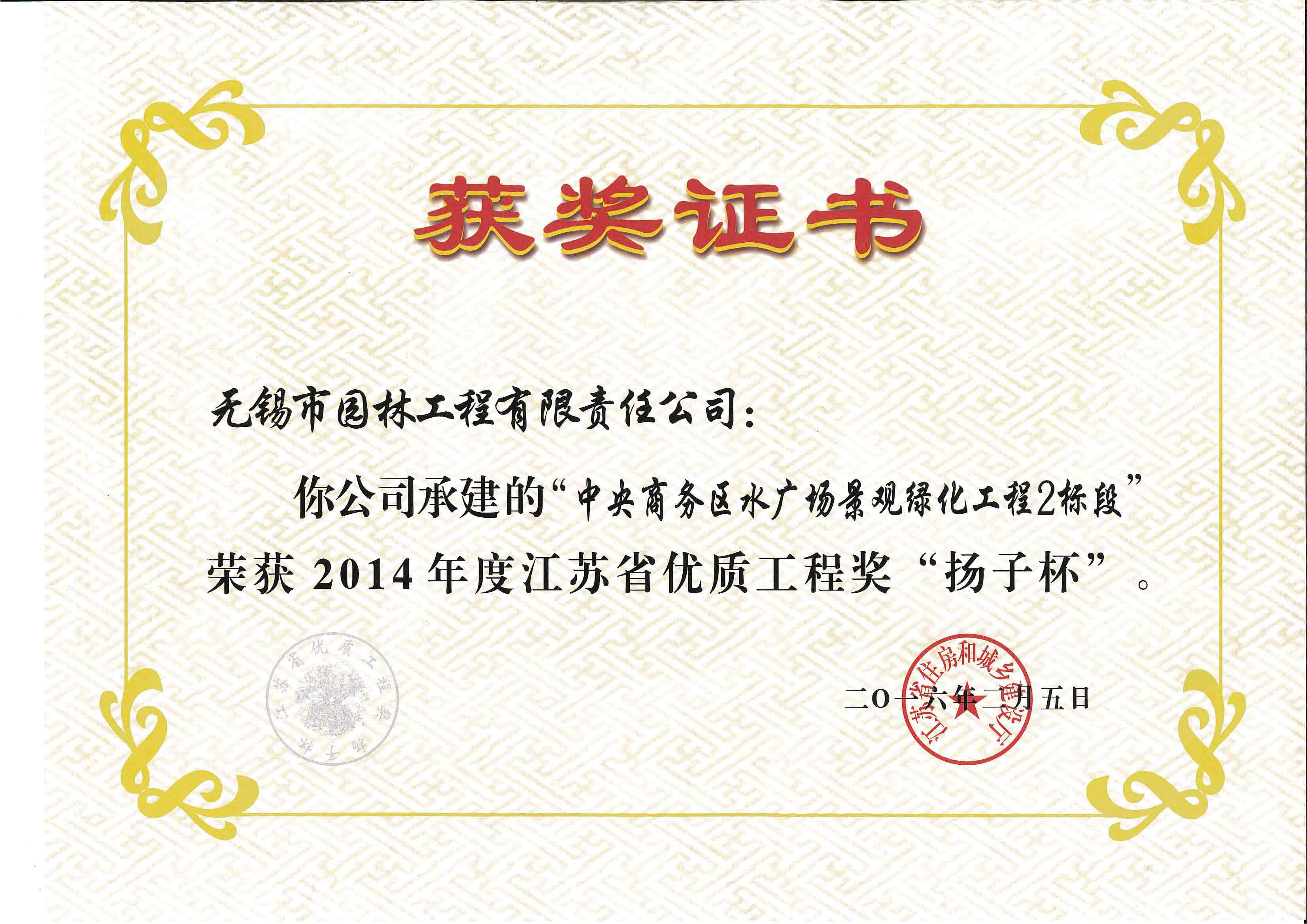 2014揚子杯——中央商務區水廣場景觀綠化工程2標段