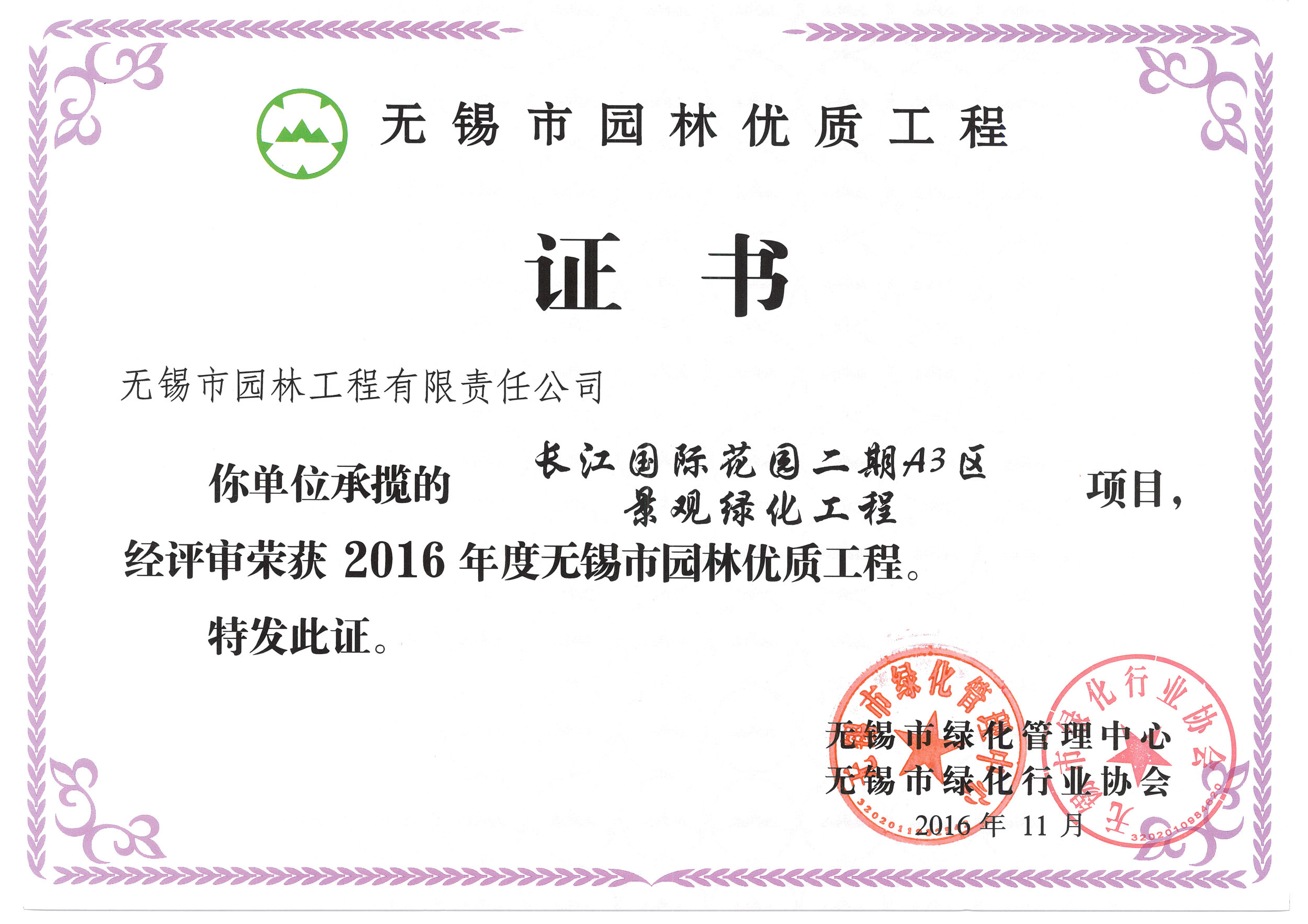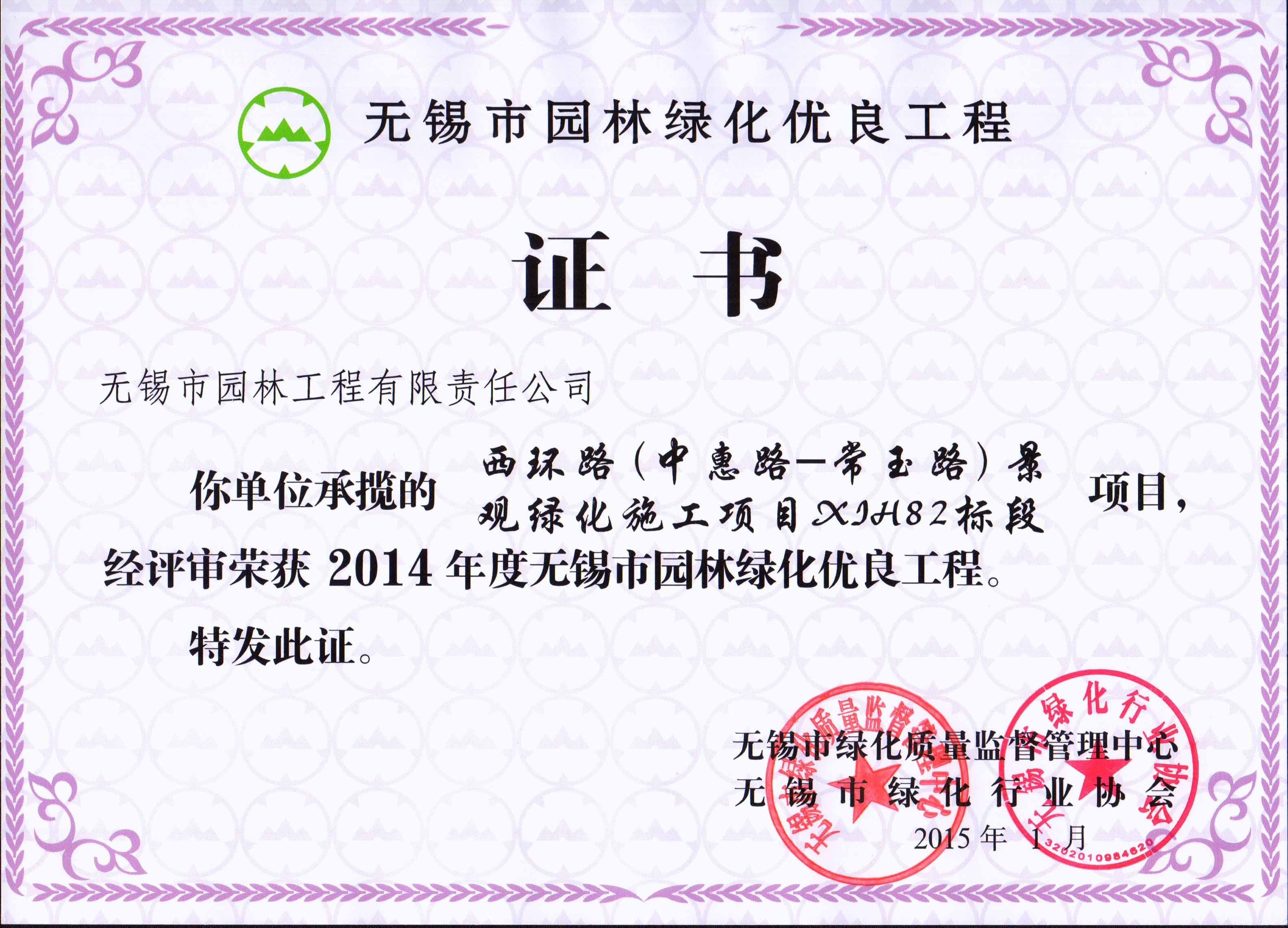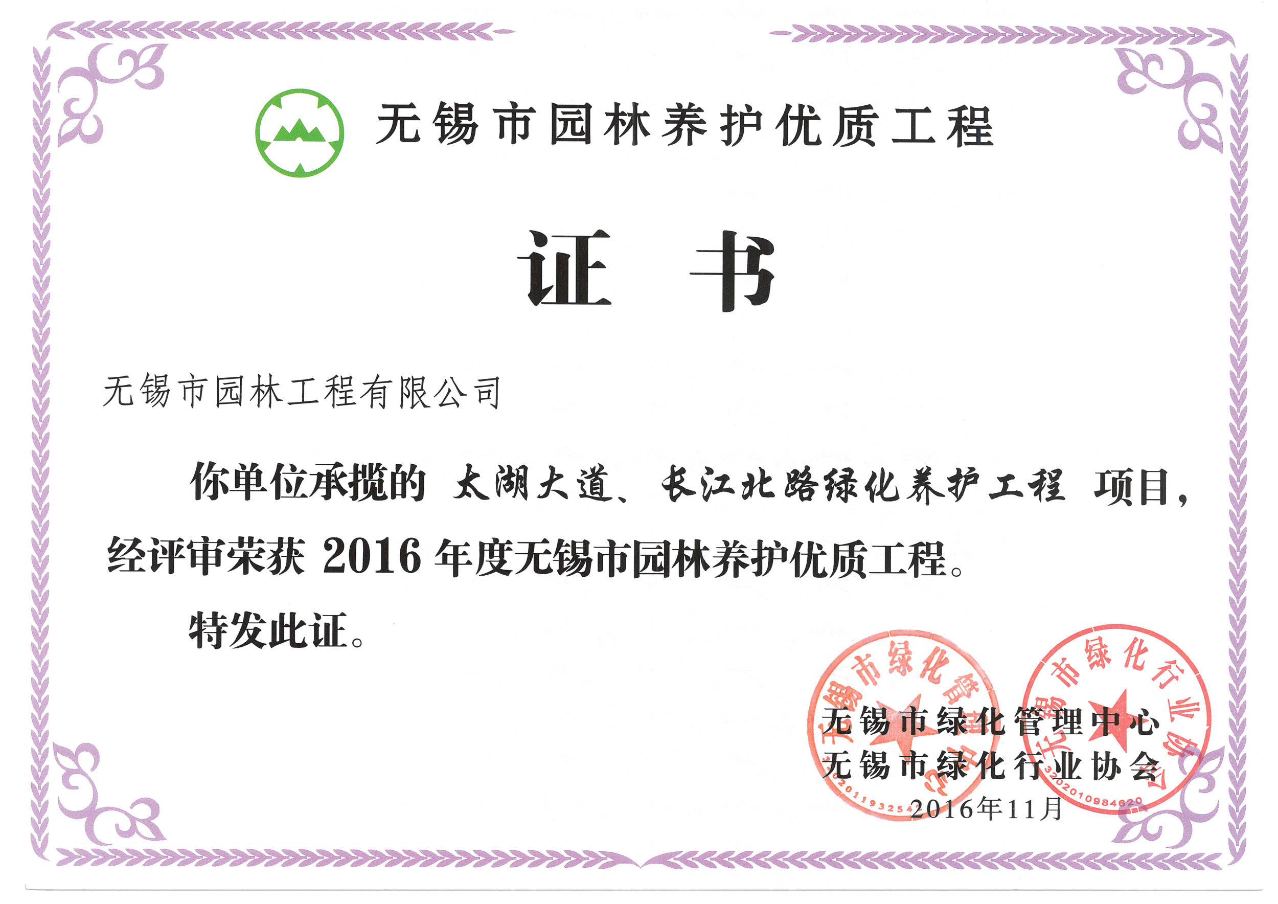 2016揚子杯——無錫地鐵1號線沿線景觀綠化工程三標