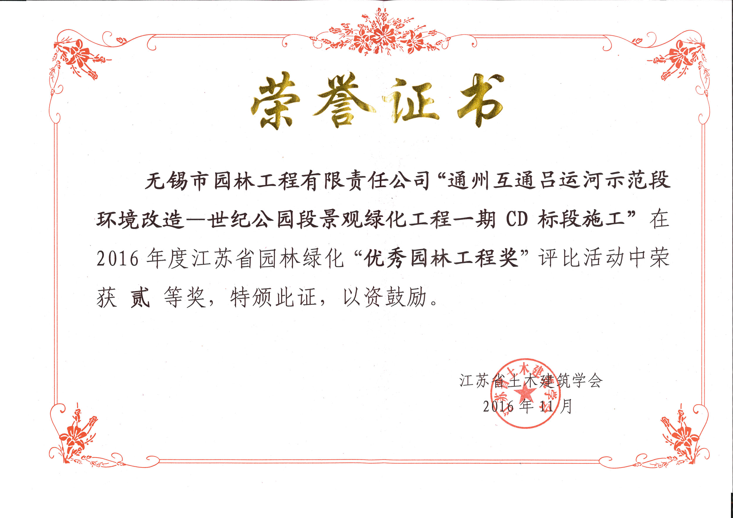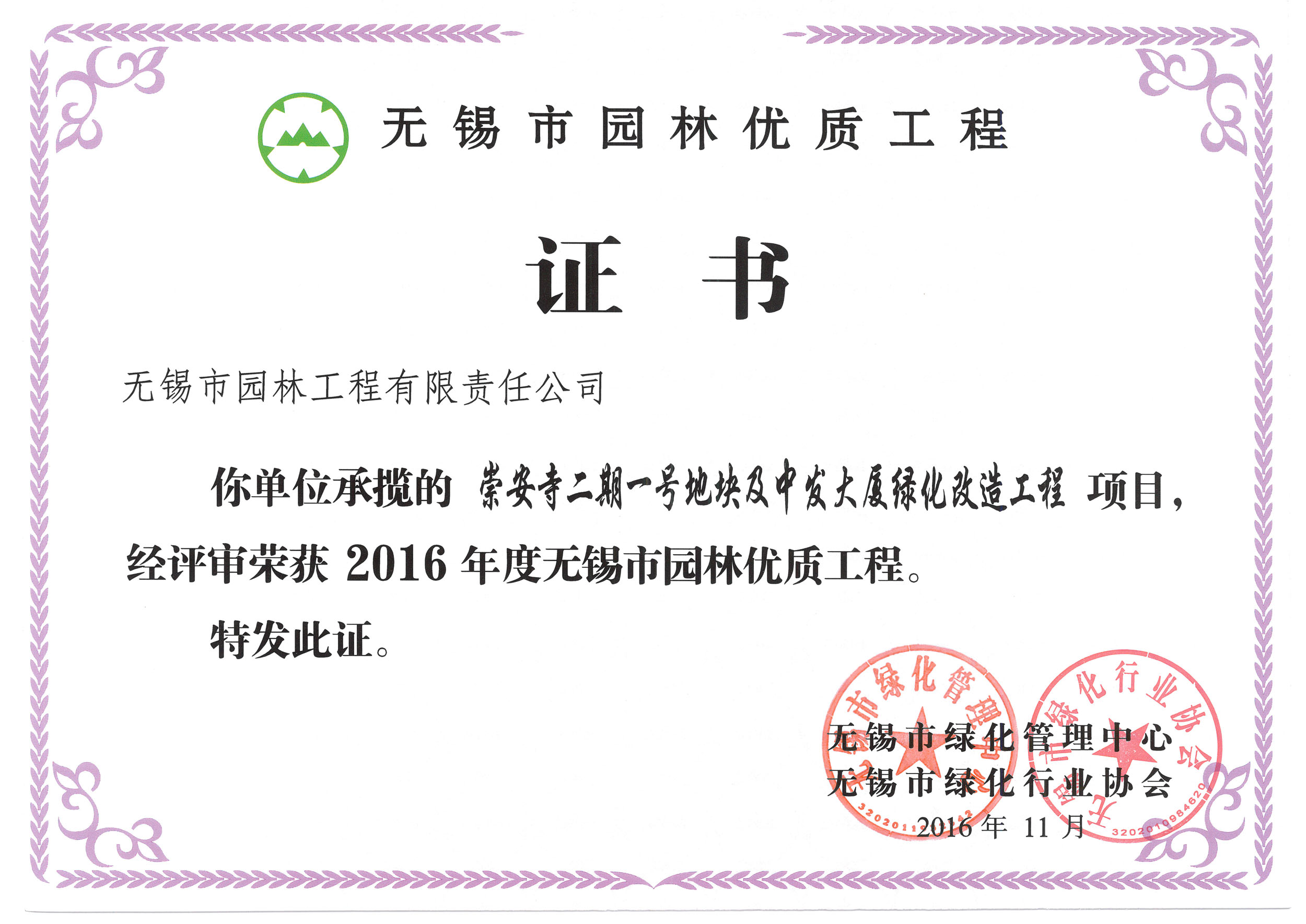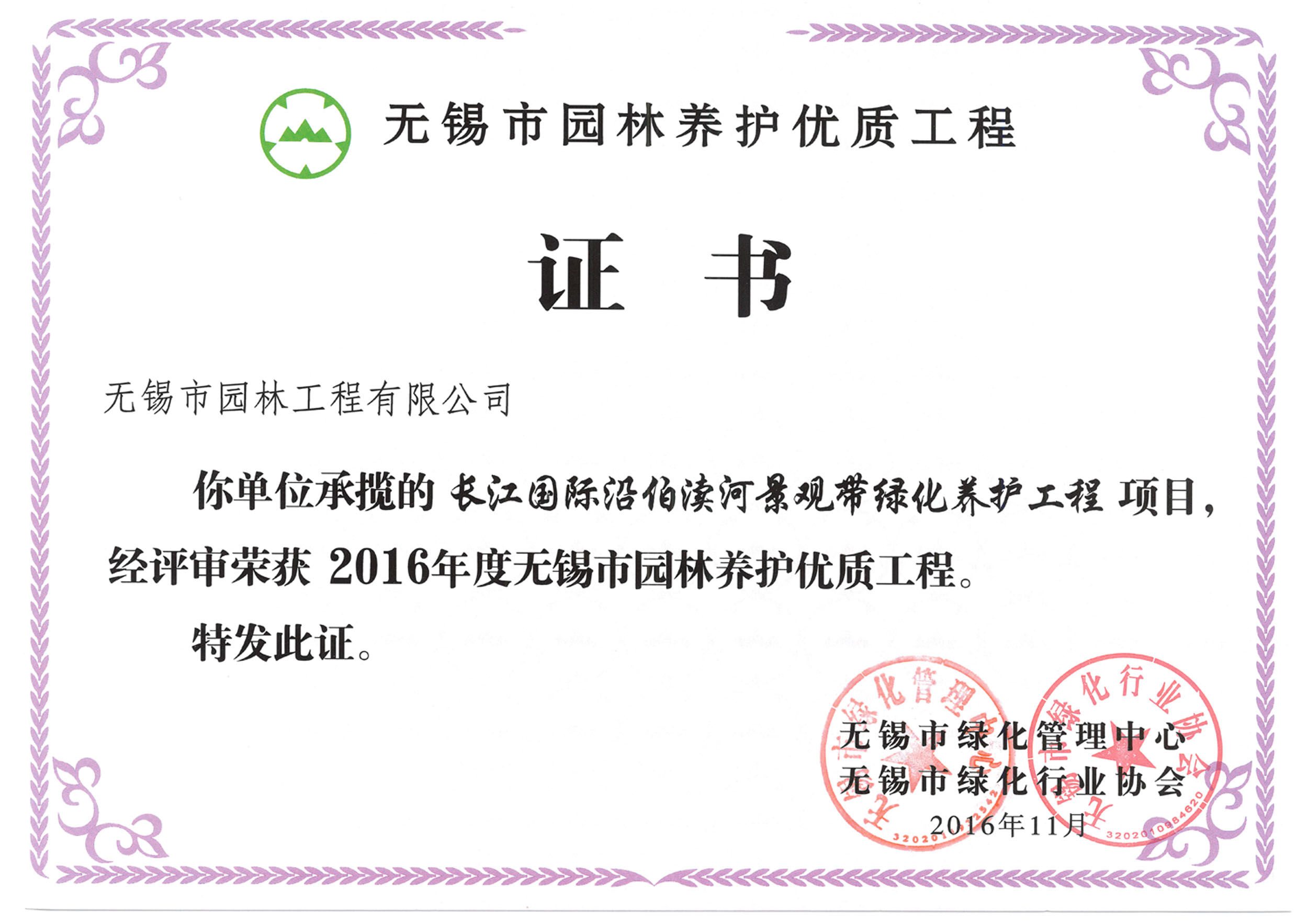 2016揚子杯——無錫地鐵1號線沿線景觀綠化工程三標