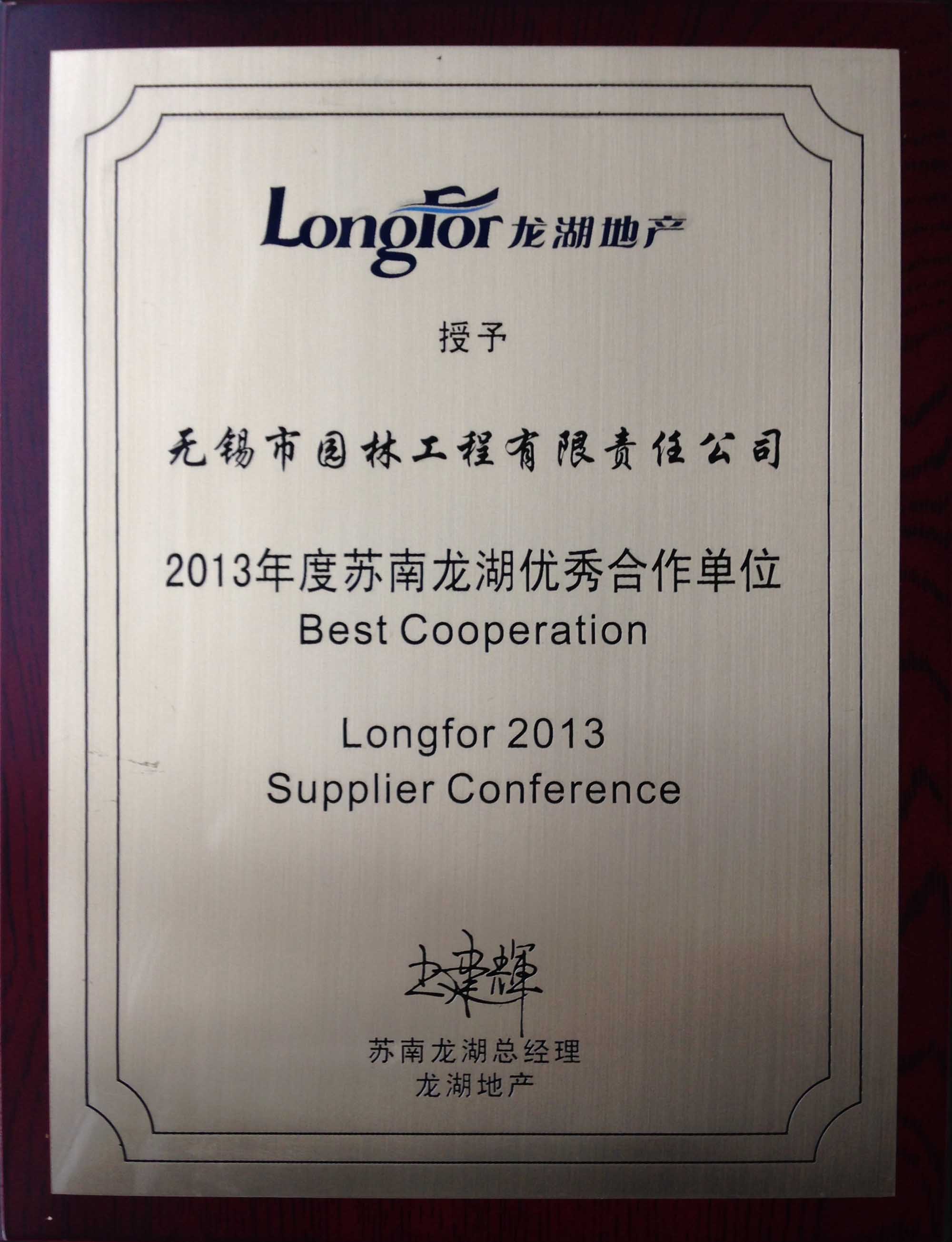 2013年度蘇南龍湖優秀合作單位