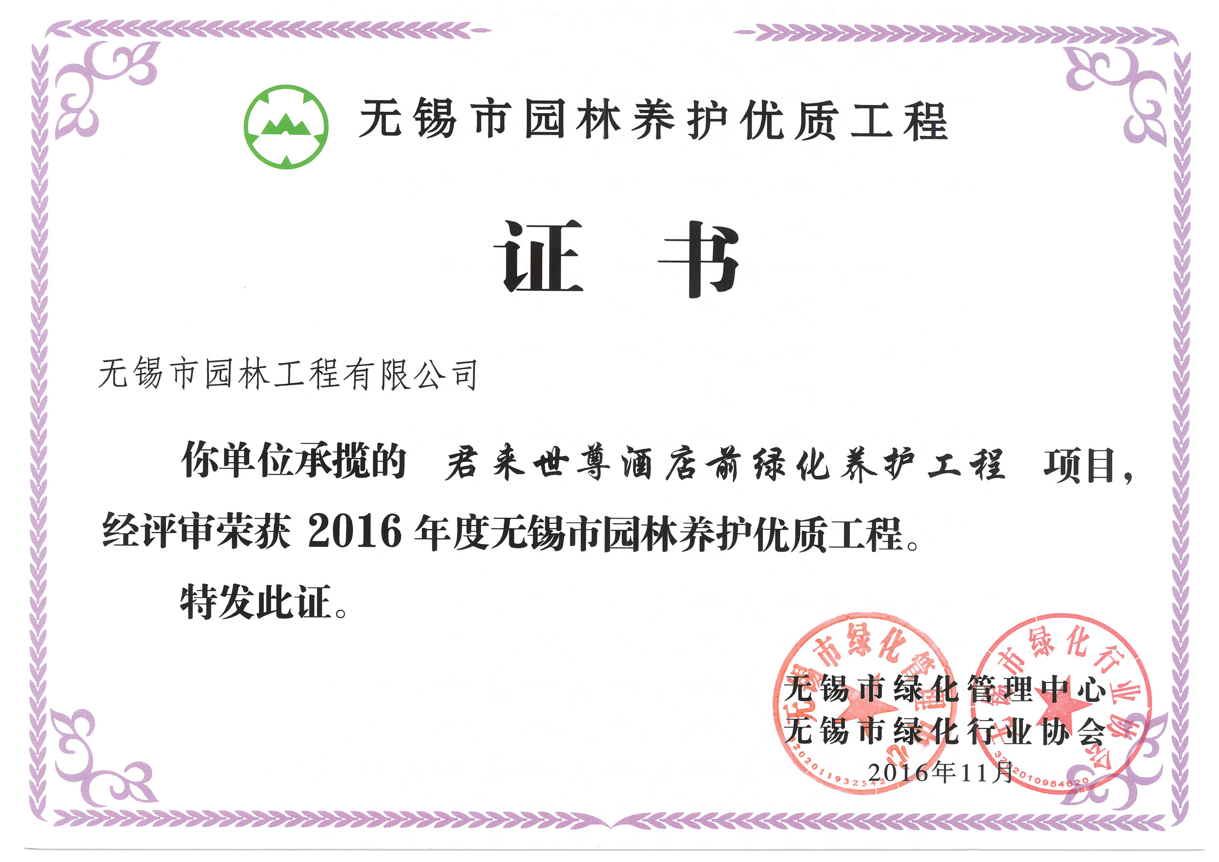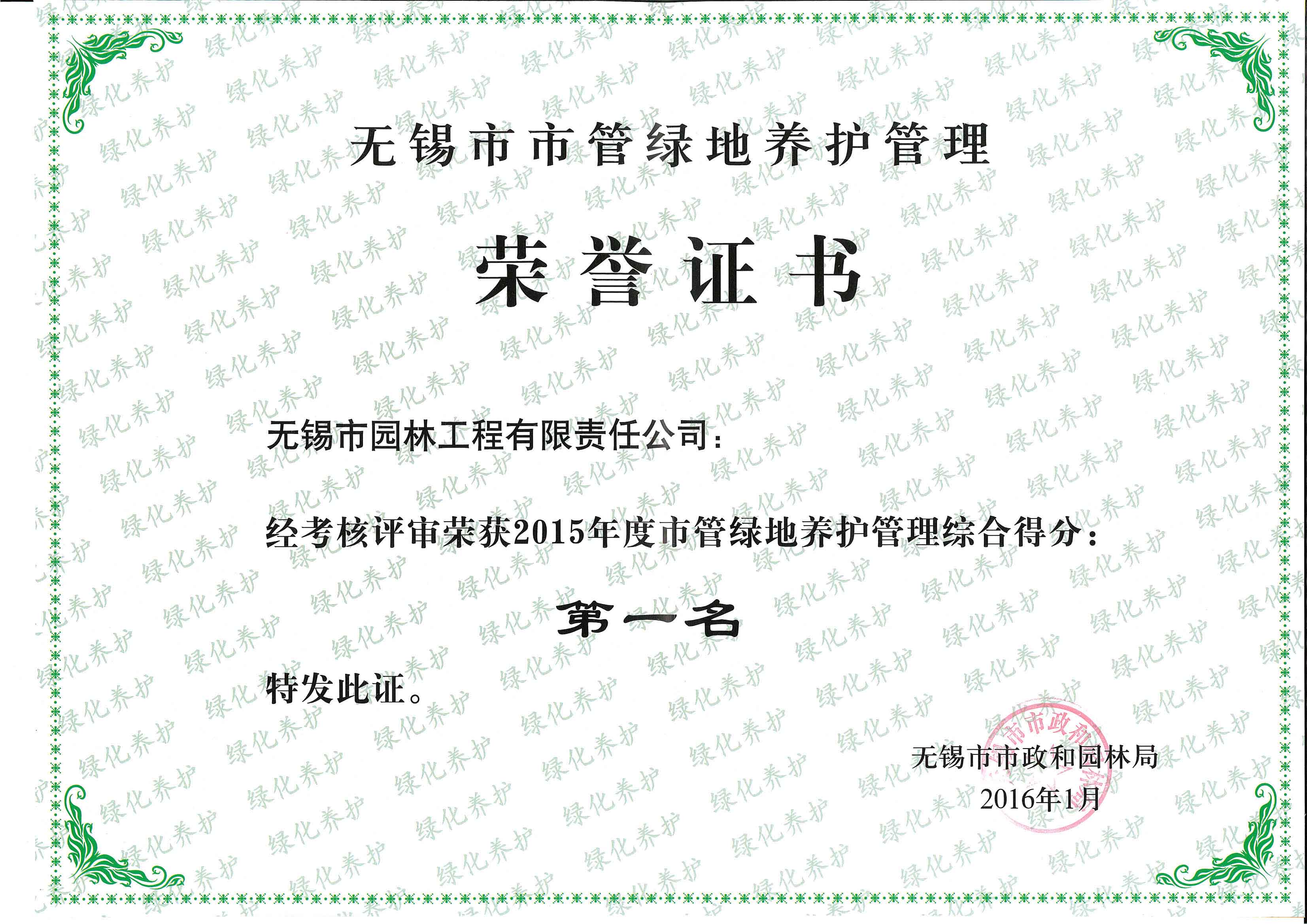 2015年度無錫市園林綠化明星企業