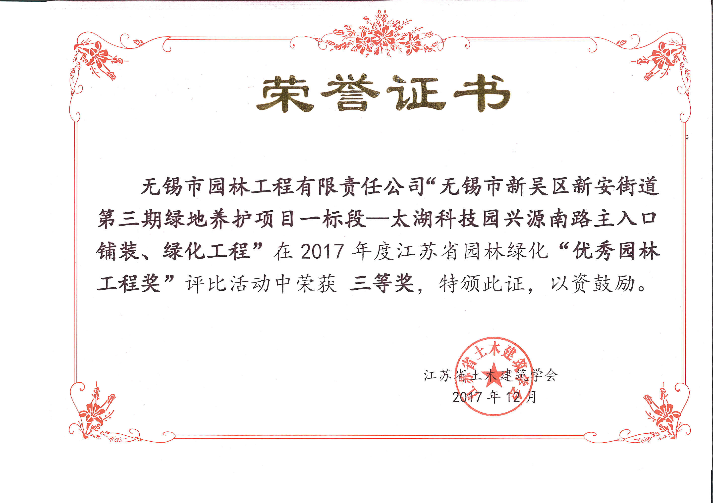 2017年度無錫市太湖杯優質工程