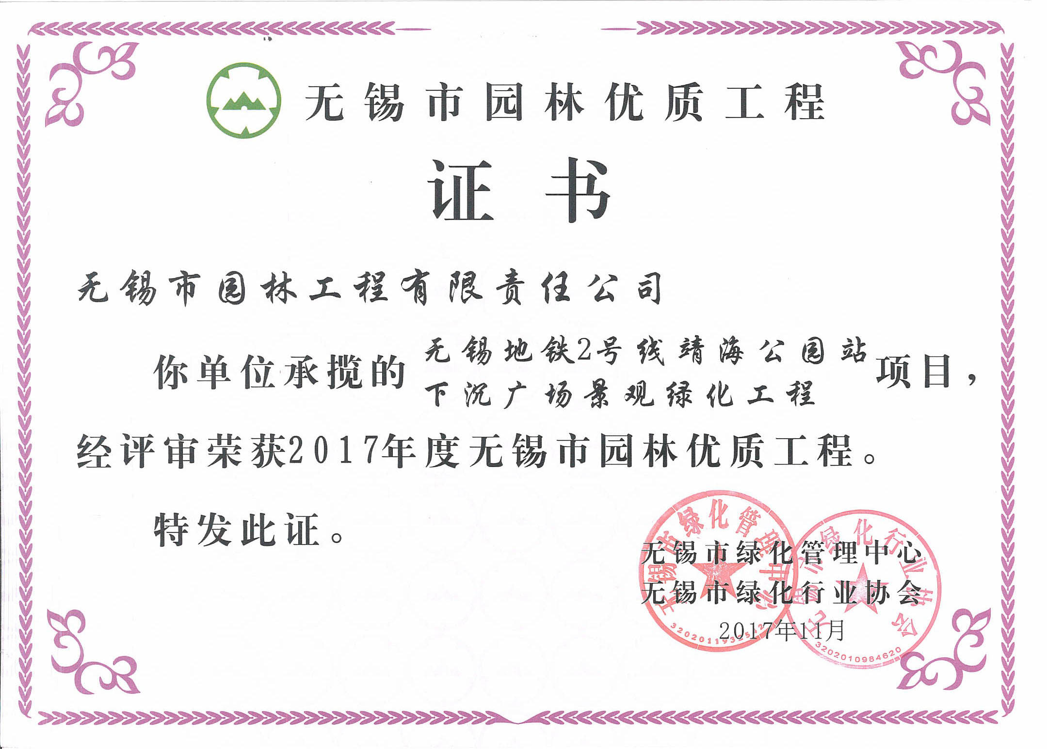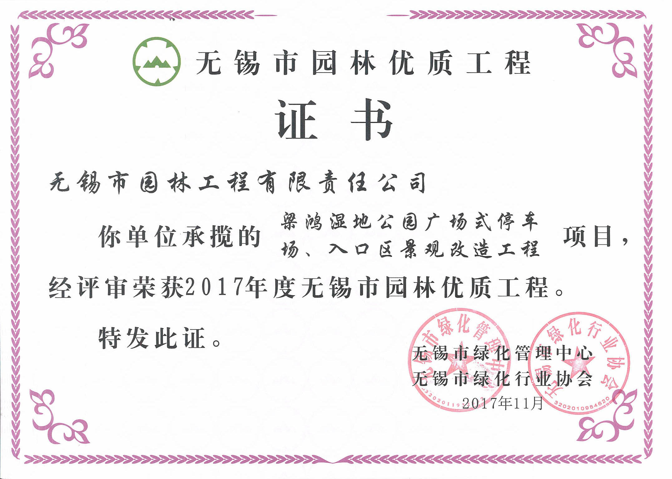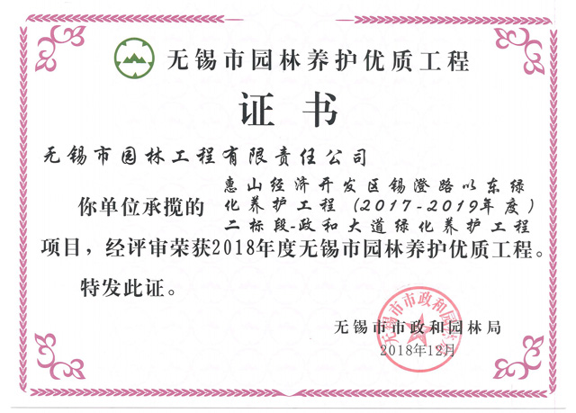 2017-2018無錫市綠化工作先進單位